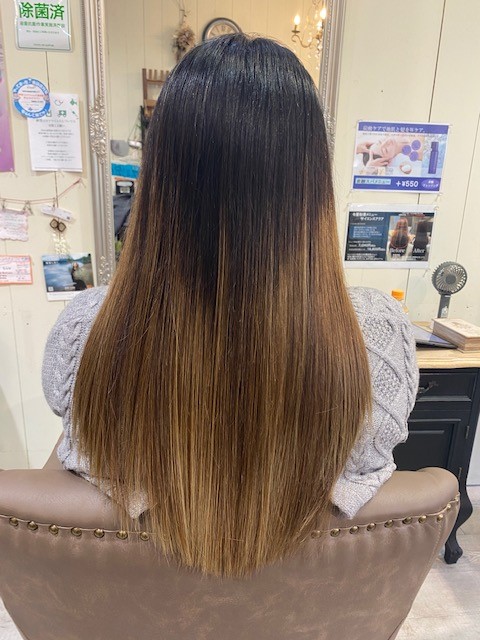 こちらのお客様は、カラーを繰り返しされてダメージが強くなったうえに縮毛矯正をされてる為にダメージがあります。