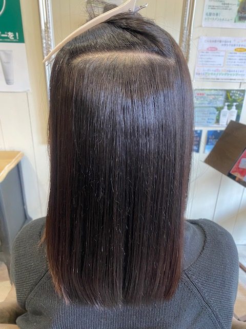 根元からあった癖をとる事により、艶がでるのと真っ直ぐおろしてもボリュームを抑えれて髪にまとまりが出ます。